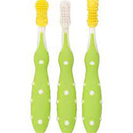 This Nuby Oral Care Set is a 3 stage system that is perfectly sized to help protect your baby’s primary teeth. These Nuby beginner toothbrushes promote the early development of good dental hygiene. The bristles on each brush are designed especially with a child in mind. The result of this special attention to detail is a product your child can use with ease.